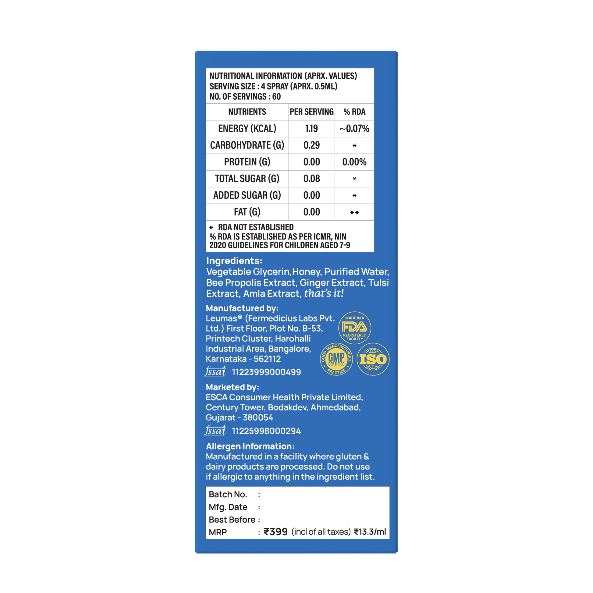 Honey (along with Veg Glycerin, as used in our sprays) is proven to be an effective demulcent. Do you know the Indian as well as American Academy of Pediatricians recommend Honey for management of mild to moderate coughs.